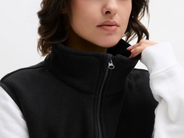 - Низ изделия и пройма жилета обработаны эластичной лентой в тон основного изделия
