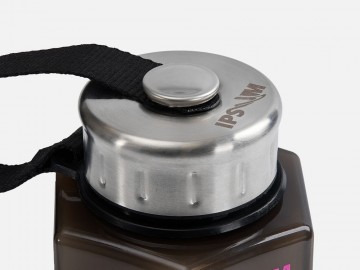 Узкая средняя часть обеспечивает удобный и надежный хват. Крышка с уплотнительным кольцом надежно защищает от протекания. Прочный ремешок фиксирует крышку, не давая ей потеряться. Полупрозрачный корпус выполнен из качественного пищевого пластика, который полностью безопасен для здоровья.