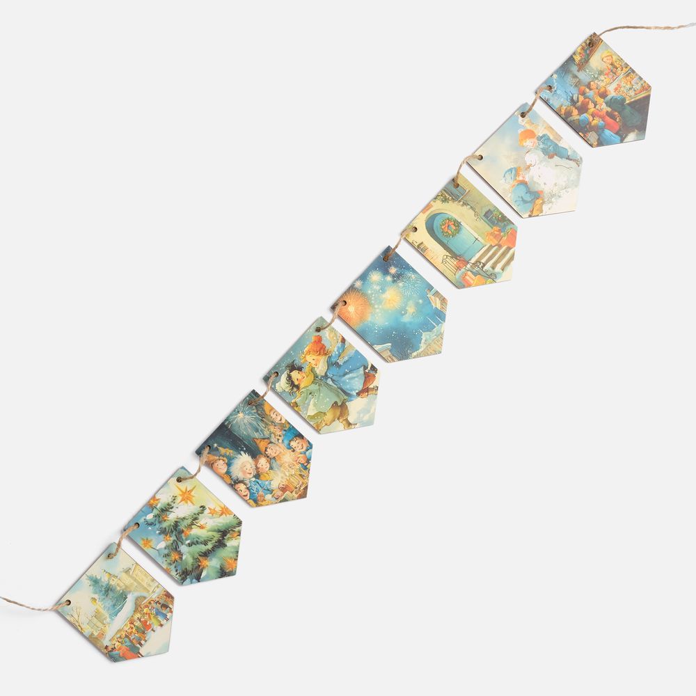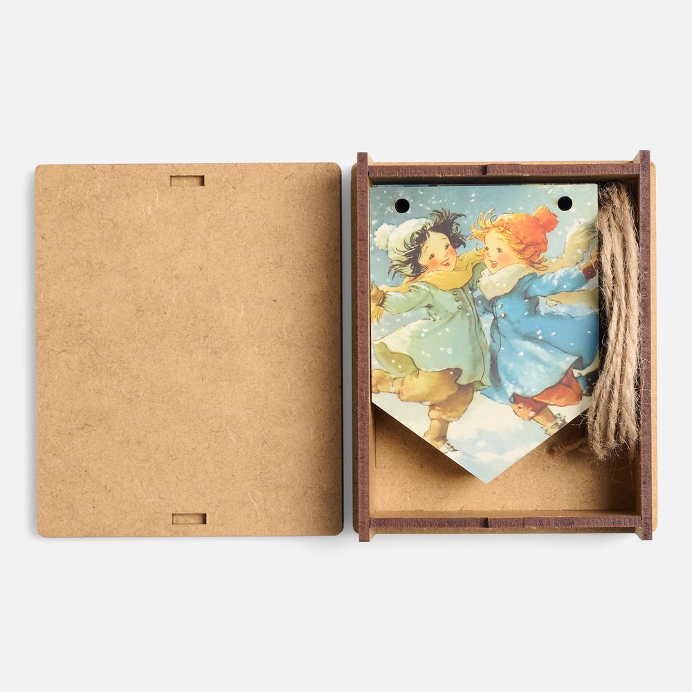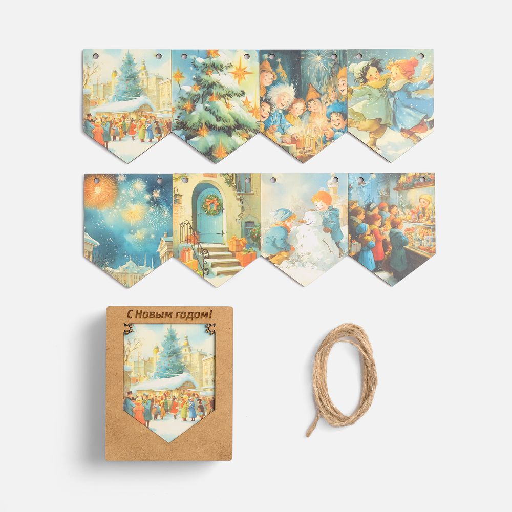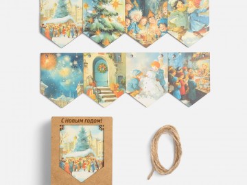 Гирлянда «Праздничные мотивы» станет прекрасным элементом новогоднего декора: ей можно украсить елку, камин, стену, окно или рабочее пространство. Благодаря прочной основе из дерева и плотному джутовому шнуру она прослужит не один сезон.8 флажков с джутовой веревочкой упакованы в подарочную шкатулку для хранения.