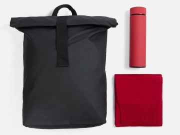 Составляющие набора — шарф и термос — помогут оставаться стильным и, что немаловажно, довольным даже в холодное время года. Модный и практичный рюкзак с удобной регулировкой объема роллтоп всегда подстроится под ситуацию, а потому станет просто незаменим как ежедневно в городе, так и в путешествии.