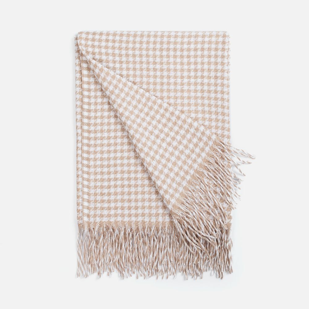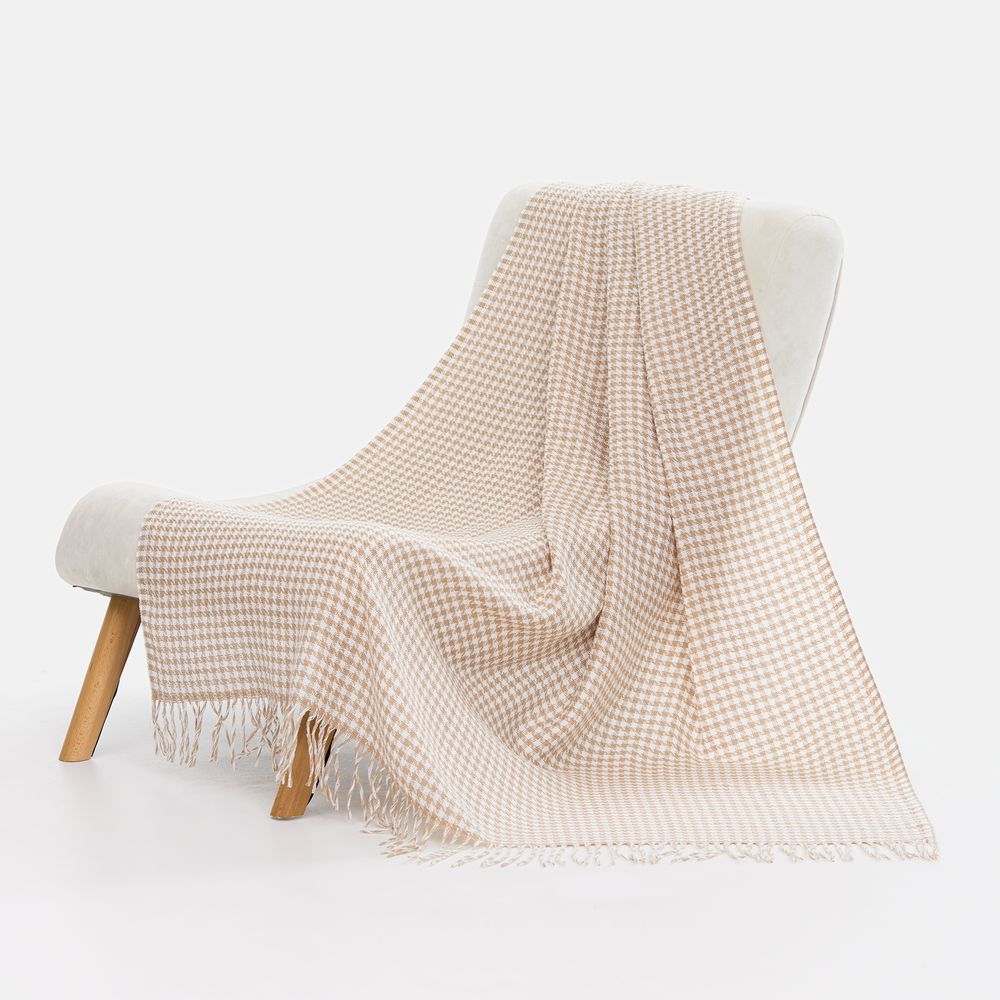 Графичный узор «гусиная лапка» (или «pied-de-poule») превращает изделие в изысканный интерьерный акцент, а бахрома добавляет ему элегантности и завершенности. Это воплощение безупречного вкуса и дань вневременной классике.