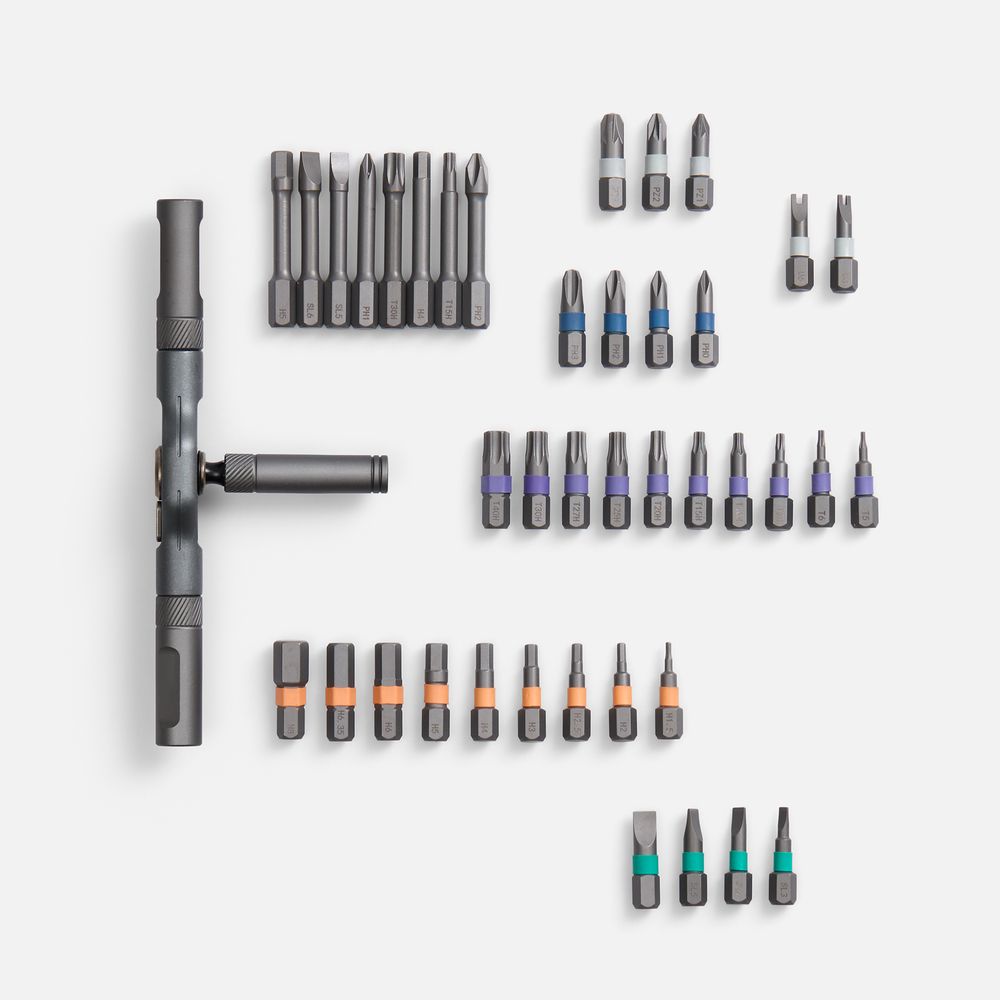 Fix Trix — там, где важна точность.В комплекте реверсивная отвертка с трещоткой, состоящая из реверсивной основы, трех съемных магнитных держателей и 40 бит: