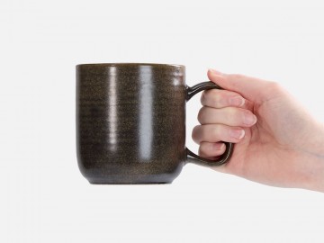 Кружка покрыта реактивной глазурью — особым видом керамического покрытия, компоненты которого вступают в химическую реакцию во время обжига при температуре 1200°C и выше. Из-за непредсказуемого взаимодействия компонентов создаются уникальные переливы, узоры и текстуры, поэтому в партии невозможно найти два абсолютно одинаковых изделия.