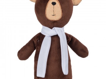 Милый мишка в шарфике с целой коллекцией разнообразного ароматного меда идеально дополняет основной, более практичный подарок — объемный шарф из толстой пряжи, который впишется в любой зимний образ.