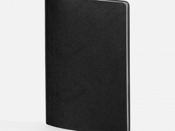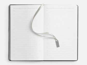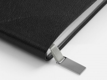 Ежедневник с гибкой обложкой, выполнен из материала Petrus, черный АА, дополнен серым ляссе с металлическим шильдиком.