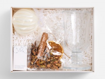 Помимо компонентов для приготовления любимого зимнего напитка здесь представлены главные новогодние атрибуты — для атмосферного оформления и праздничного настроения. Мягкий свет свечи и теплое мерцание гирлянды сделают вечер незабываемым!