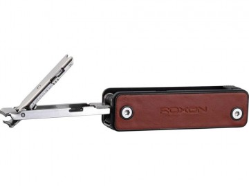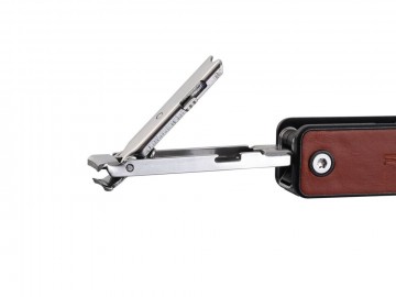 Рукоятка изготовлена из АБС-пластика с кожаными вставками — это определенно добавляет ножу стиля и солидности. Каждый инструмент оснащен функцией блокировки. Детали надежно закреплены в корпусе, что делает использование мультитула удобным и безопасным: чтобы достать нужный инструмент, просто нажмите на кнопку и выдвиньте деталь.Длина лезвия 53 мм.
