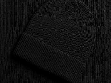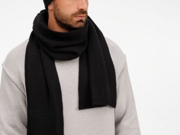 Удлиненная шапка с широким отворотом и фактурной вязкой мягко облегает голову, создавая элегантный силуэт. Широкий шарф с выразительным рельефом позволяет экспериментировать с драпировками, добавляя образу объем и динамику. Перчатки с аккуратной резинкой на манжете обеспечивают идеальную посадку и тактильный комфорт.