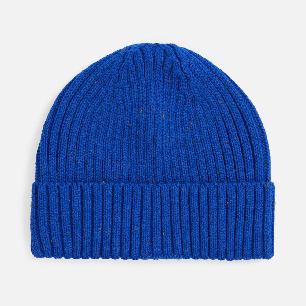 Шапка с отворотом, связанная объемной резинкой из мягкой акриловой пряжи, создает стильный силуэт и надежно защищает от холода. Особую индивидуальность ей придают контрастные вкрапления в пряже — деталь, которая делает каждое изделие уникальным.