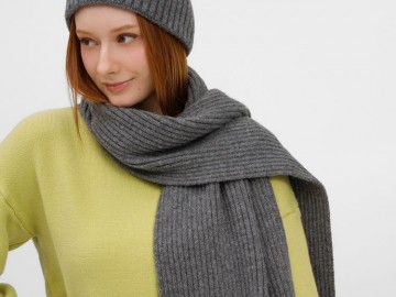 Шапку можно носить двумя способами: плотно прилегающей к голове или слегка приподнятой на макушке для создания современного силуэта. Шарф оптимальной длины и ширины позволяет экспериментировать с вариантами драпировки. Набор станет идеальным спутником для городских прогулок и поможет создать элегантный образ без лишних деталей.