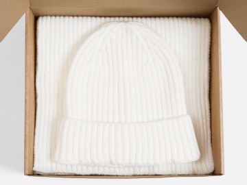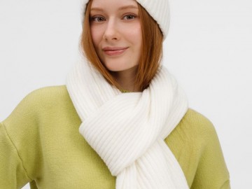 Шапку можно носить двумя способами: плотно прилегающей к голове или слегка приподнятой на макушке для создания современного силуэта. Шарф оптимальной длины и ширины позволяет экспериментировать с вариантами драпировки. Набор станет идеальным спутником для городских прогулок и поможет создать элегантный образ без лишних деталей.