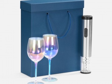 Винные бокалы с перламутровым напылением и электрический штопор будут в центре внимания на любом торжестве. Это те особые моменты, когда встреча за бокалом вина превращается в маленький ритуал и приятный повод для размеренной беседы.Емкость бокалов 350 мл.