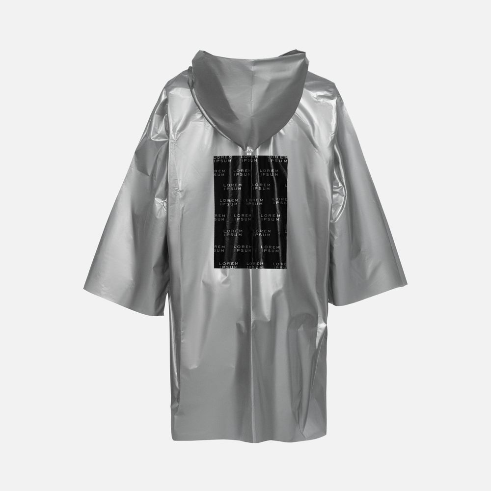 Дождевик-плащ с капюшоном и длинным рукавом из плотного полиэтилена высокого давления (ПВД).