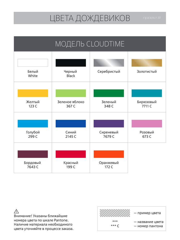 - Цвет дождевика: белый, черный, серебристый, золотистый, желтый, зеленое яблоко, зеленый, бирюзовый, голубой, синий, сиреневый, розовый, бордовый, красный, оранжевый;