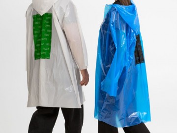 Дождевик-плащ с капюшоном и длинными рукавами из полиэтилена высокого давления (ПВД).