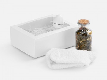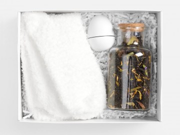 Это базовые элементы заботы — мягкие носки и бальзам для губ — и уникальный сорт чая, задающий особое настроение. Идеальное решение для всех, кто ценит спокойные моменты уединения и эстетику повседневных ритуалов.