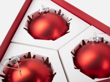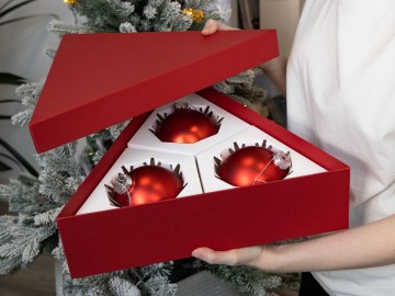 А еще Finery Trio — это маленькое произведение искусства, созданное с вниманием к деталям: шары диаметром 10 см бережно уложены в индивидуальные ложементы с изящным вырезом в форме снежинки, а стильная коробка придает подарку особую торжественность. Нестандартная треугольная форма упаковки подчеркивает оригинальность композиции и делает презент по‑настоящему запоминающимся.