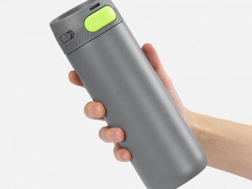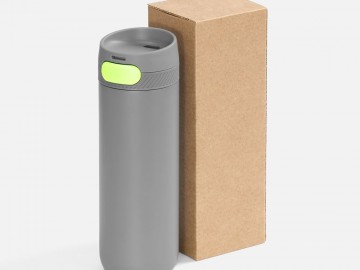 Термостакан X1 с цветной кнопкой, серый с желтым