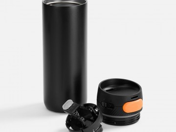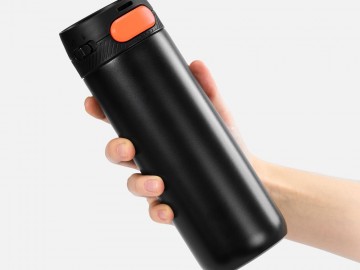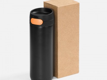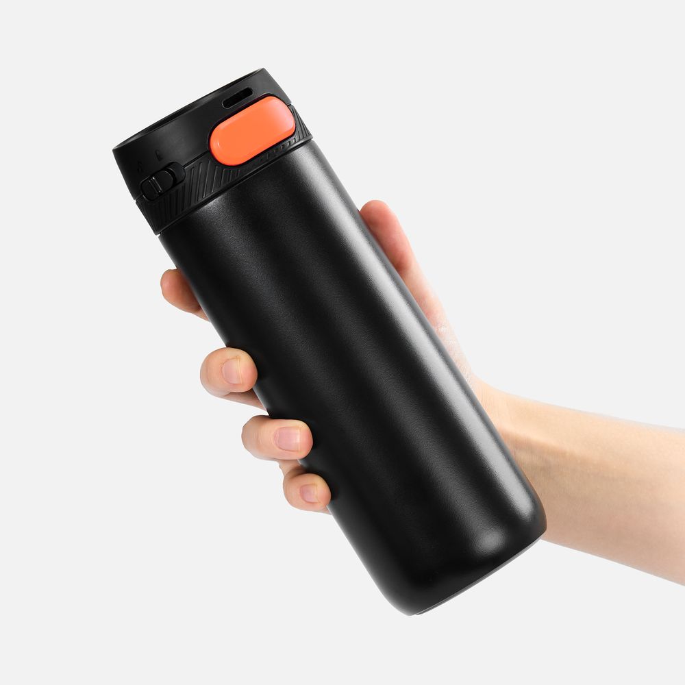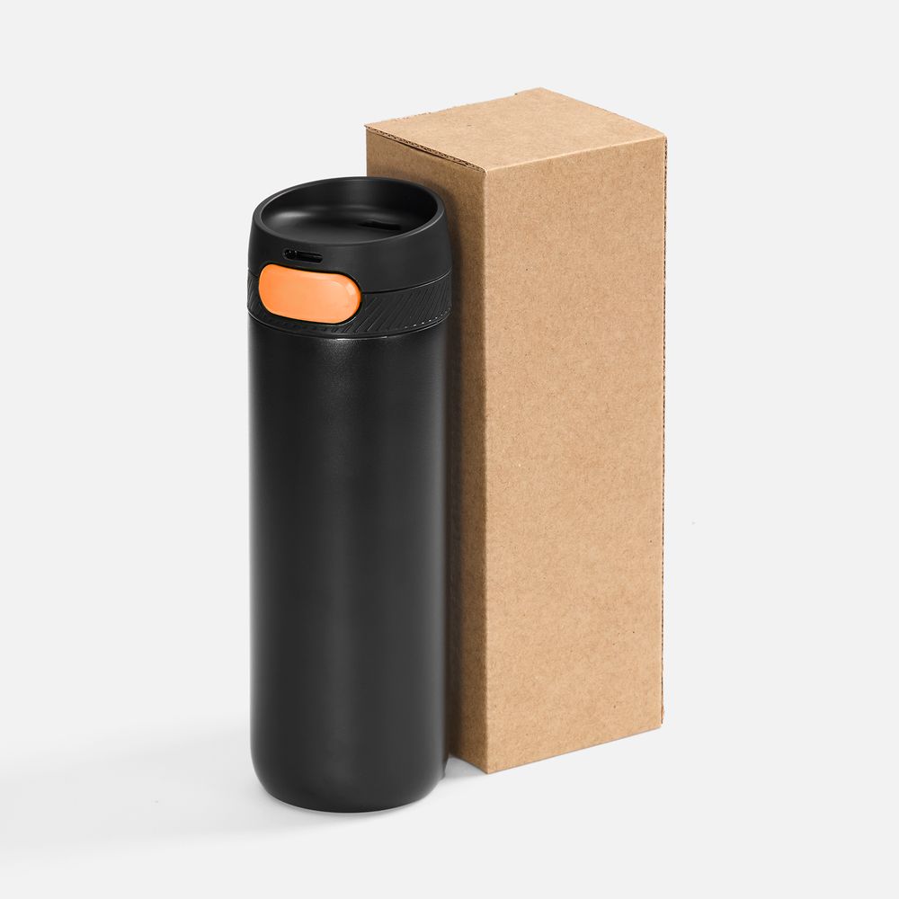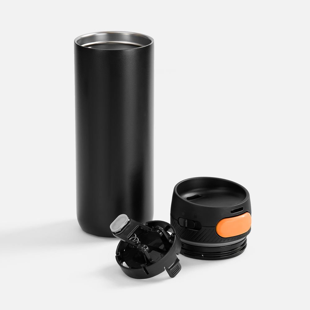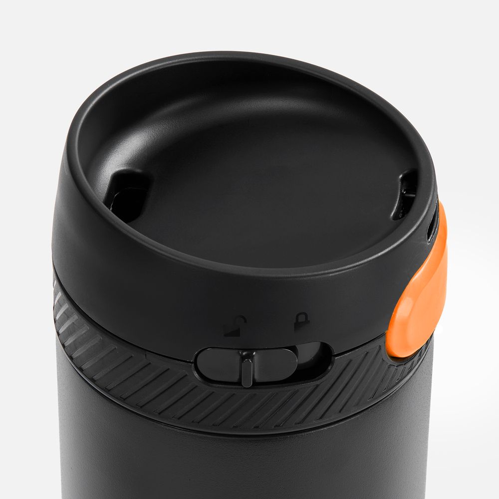Термостакан X1 с цветной кнопкой, черный с оранжевым