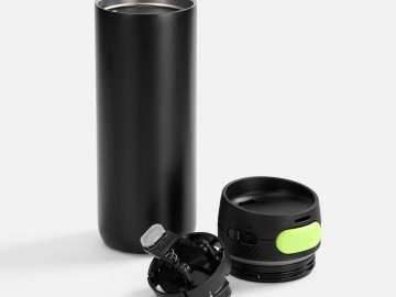 Термостакан X1 с цветной кнопкой, черный с желтым