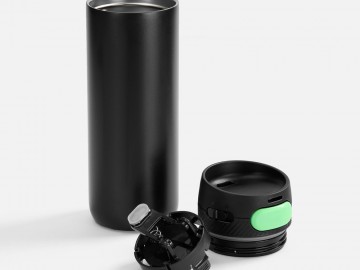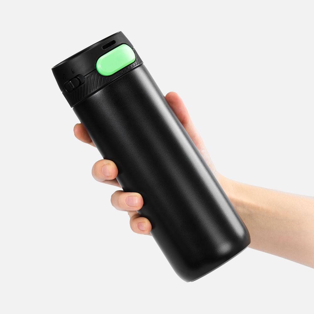 Термостакан X1 с цветной кнопкой, черный с зеленым