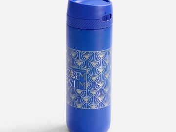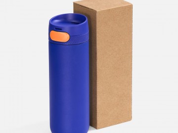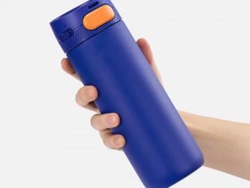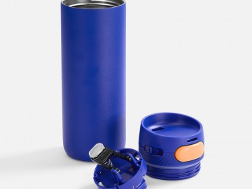 Термостакан X1 с цветной кнопкой, синий с оранжевым