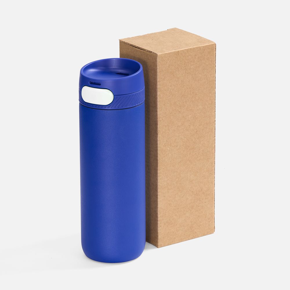Термостакан X1 с цветной кнопкой, синий с белым