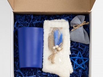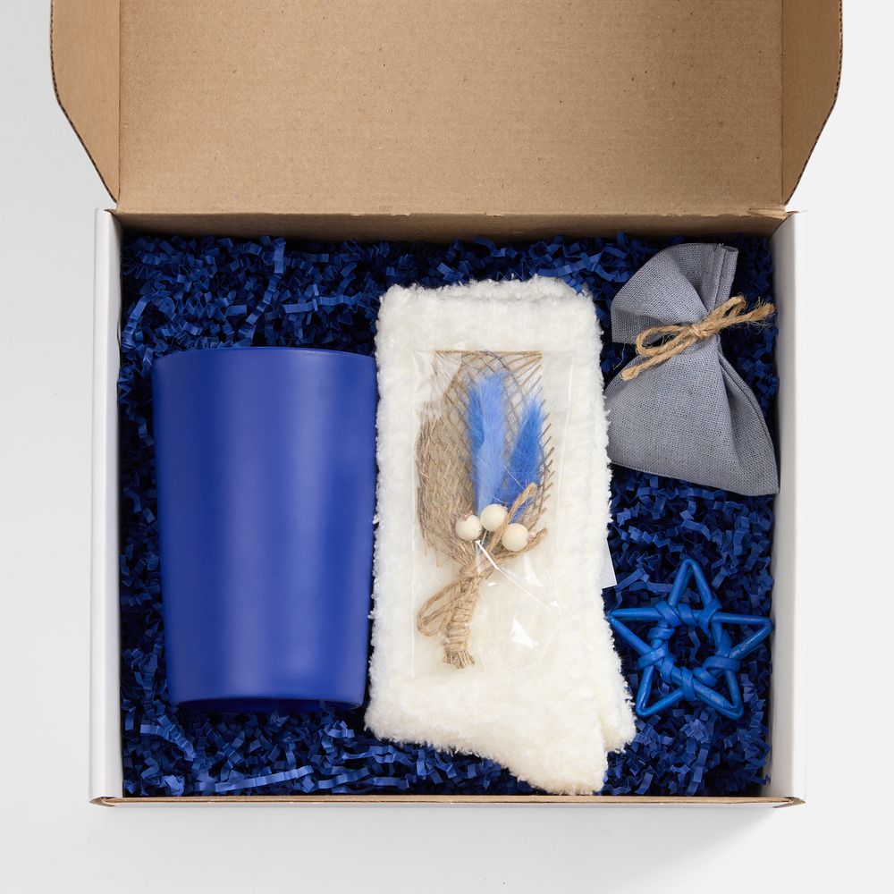 В изящной коробке — лаконичный дуэт, созданный исключительно для комфорта и спокойных мгновений: софт-тач кружка для любимых напитков и мягкие пушистые носки для полного расслабления.