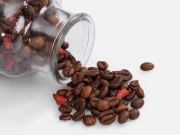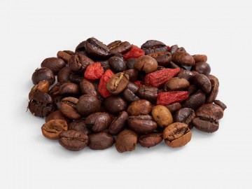 Состав: кофе натуральный жареный в зернах, сушеные ягоды годжи, ароматизатор натуральный «Барбарис».