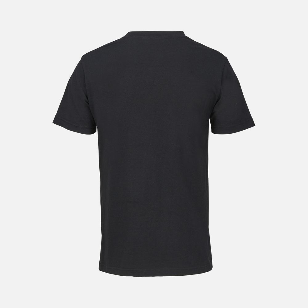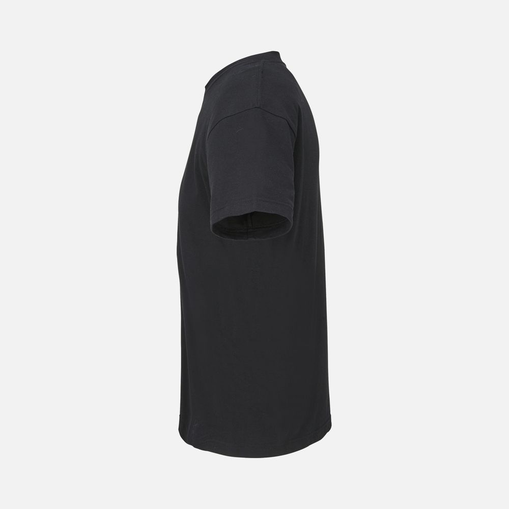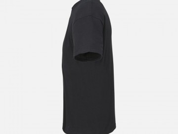 Ткань хорошо держит форму и не просвечивает, при этом футболка остается мягкой и приятной к телу. Особенности обработки волокна и конструкция с заметной высокой горловиной создает аутентичный образ с винтажной фактурой.