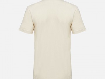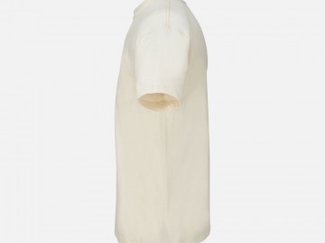 Ткань хорошо держит форму и не просвечивает, при этом футболка остается мягкой и приятной к телу. Особенности обработки волокна и конструкция с заметной высокой горловиной создает аутентичный образ с винтажной фактурой.