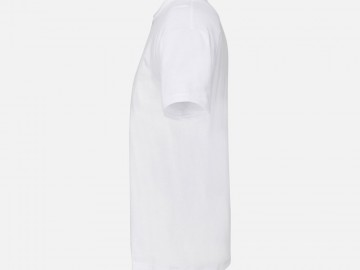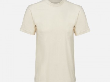 Ткань хорошо держит форму и не просвечивает, при этом футболка остается мягкой и приятной к телу. Особенности обработки волокна и конструкция с заметной высокой горловиной создает аутентичный образ с винтажной фактурой.