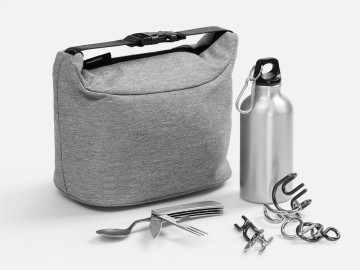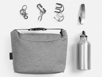 Нержавеющий столовый прибор выручит при желании перекусить вне дома или офиса, термосумка сохранит еду теплой, а прочная алюминиевая бутылка — напиток горячим. Все необходимое всегда под рукой. А чтобы перезагрузить голову, добавлена увлекательная головоломка — источник свежих идей.Емкость бутылки 400 мл.