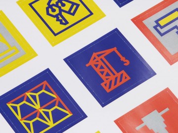 В каждой части общего рисунка изображены главные символы, связанные со строительством.