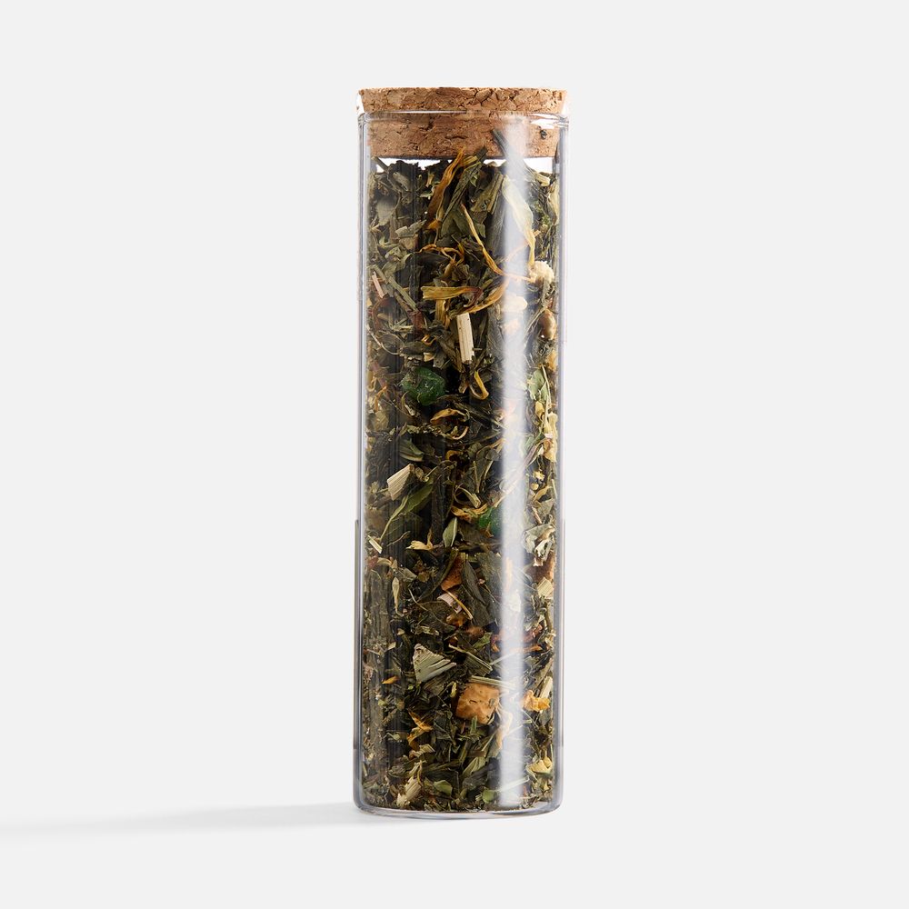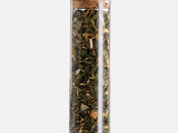 - чай зеленый ароматизированный «Хорошее настроение» (состав: зеленый чай сенча, лимонная трава, календула, мята, сушеное яблоко, сушеный апельсин, сушеная клубника, ароматизатор «лайм», ароматизатор «мята»), вес 25 г.