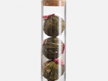 - связанный зеленый чай с цветами «Нефритовый Лотос» (состав: зеленый чай сенча, цветы хризантемы), вес 25 г — благодаря особой технологии скрутки чай, словно цветок, распускается в чайнике или чашке, при заваривании рекомендуем использовать прозрачную стеклянную посуду;
