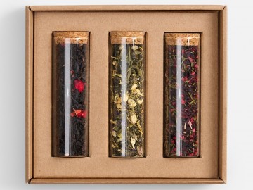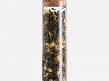 - чай зеленый «Восемь сокровищ Шаолиня» (состав: сенча, зеленый чай ганпаудер, папайя, лепестки сафлора, лепестки календулы, ароматизатор «клубника»), вес 25 г;