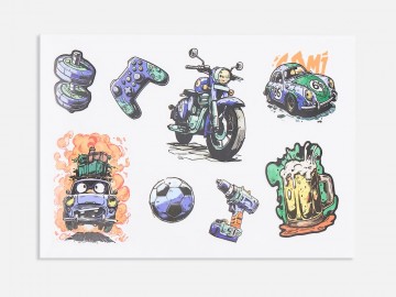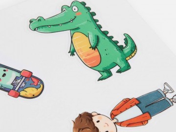 Полноцветное изображение наносят методом UV-печати на специальную пленку с клеящим слоем, затем закрывают защитной пленкой, — получается наклейка, полностью готовая к монтажу.