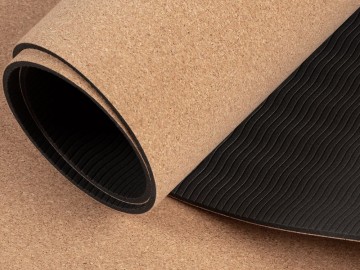 Лицевая сторона выполнена из пробки — экологичного, теплого и приятного на ощупь материала, а обратная из ТПЭ — термопластичного эластомера, который гарантирует надежное сцепление коврика с поверхностью.