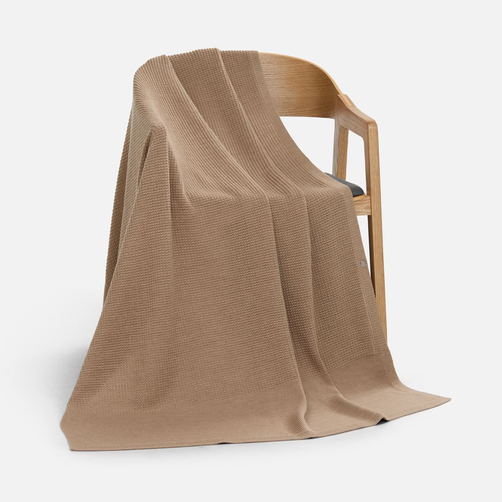 Плед поставляется в стильном кофре с аккуратным кошелечком на кнопке — продуманная деталь для удобного хранения и бережной транспортировки. Такой плед легко взять с собой в путешествие, он станет вашим любимым спутником в прохладное время года.