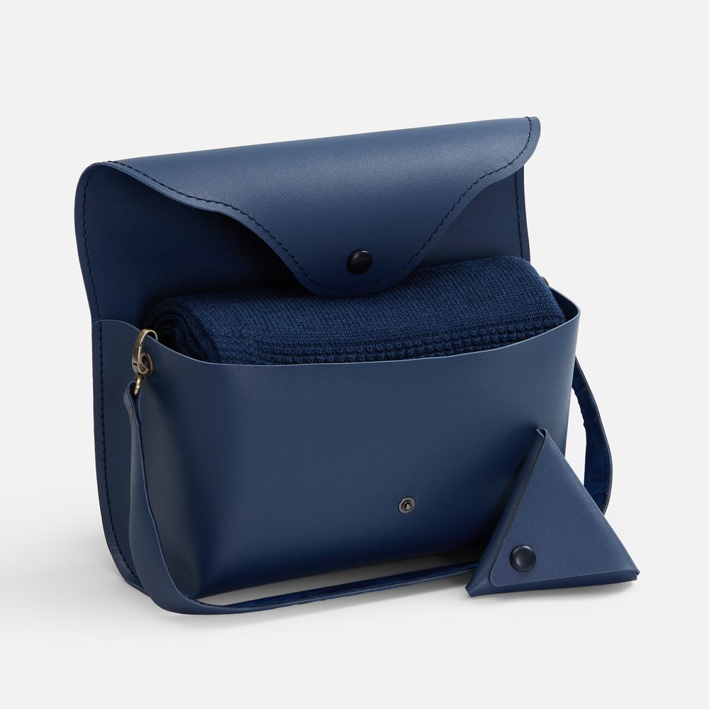 Плед поставляется в стильном кофре с аккуратным кошелечком на кнопке — продуманная деталь для удобного хранения и бережной транспортировки. Такой плед легко взять с собой в путешествие, он станет вашим любимым спутником в прохладное время года.
