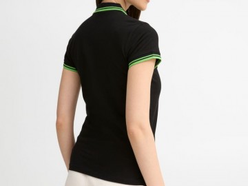 Рубашка поло женская Pasadena Women 200 с контрастной отделкой, черная с зеленым