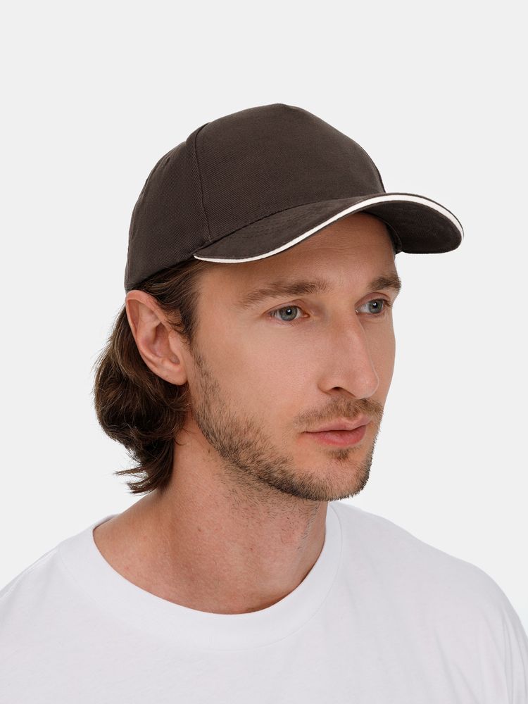 Бейсболка Long Beach, коричневая с бежевым