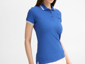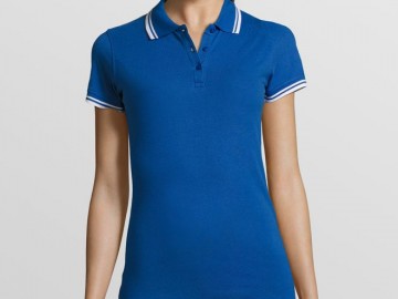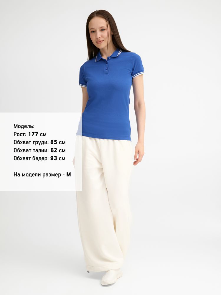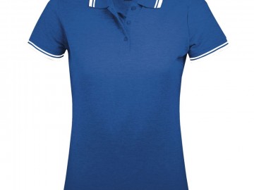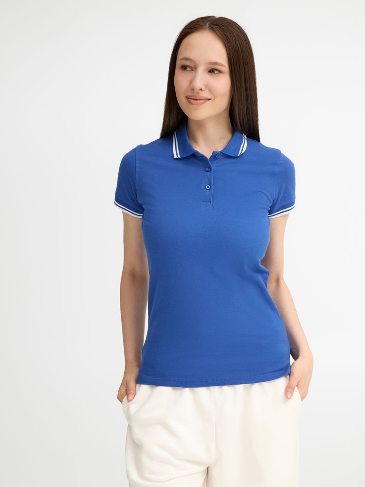 Рубашка поло женская Pasadena Women 200 с контрастной отделкой, ярко-синяя с белым