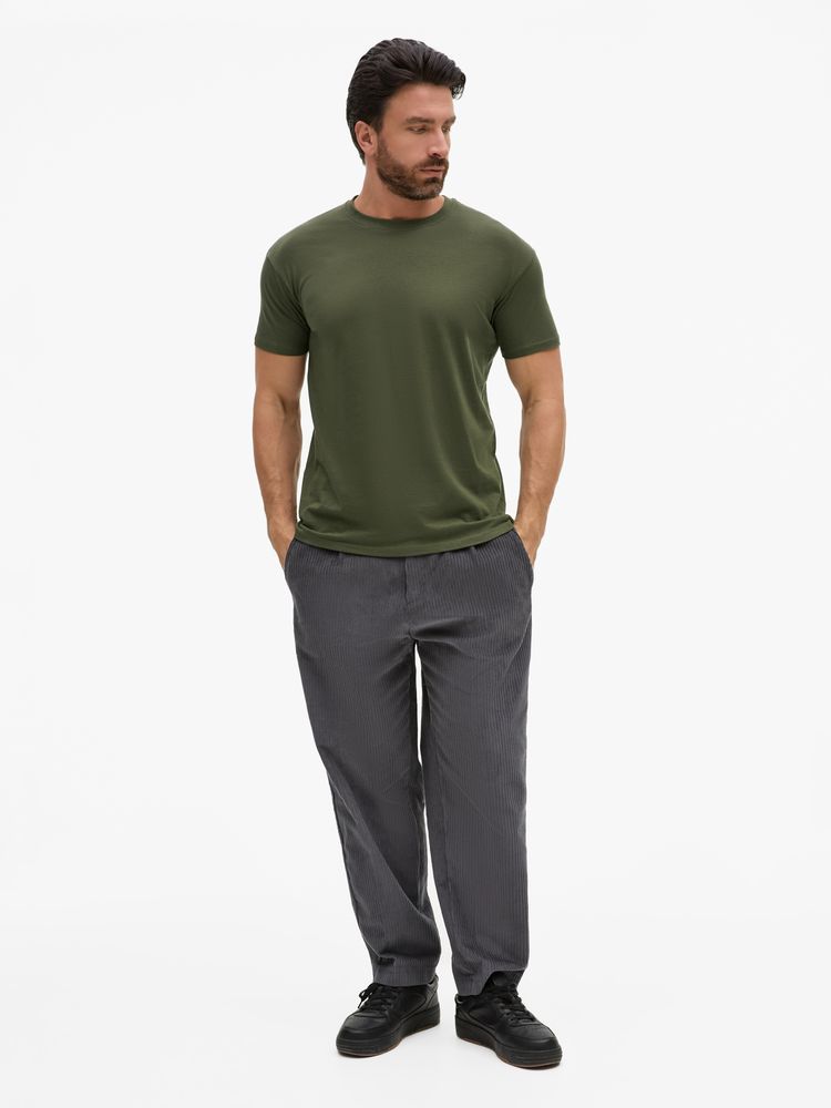 - Круглый воротник выполнен резинкой с эластаном и защищен от деформации укрепляющей тесьмой