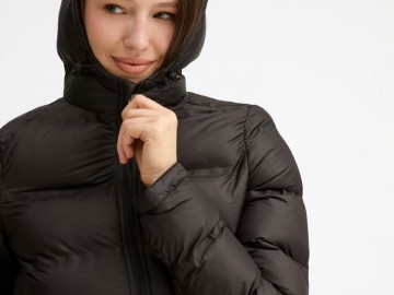 - Регулируемый капюшон со стягивающим шнурком с наконечниками
